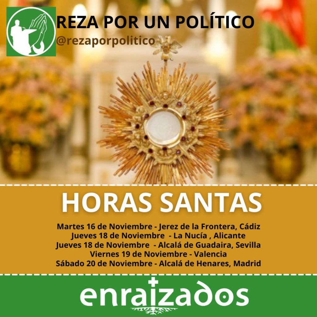 Sin olvidar nuestras oraciones por los políticos que tenemos asignados, la semana 22 al 28 de noviembre rezamos por: Lunes: Juan Fernando López Aguilar (PSOE) Martes: Leopoldo López Gil (PP) Miércoles: Antonio López-Istúriz White (PP) Jueves: César Luena López (PSOE) Viernes: Cristina Maestre Martín de Almagro (PSOE) Sábado: Adriana Maldonado López (PSOE) Domingo: Gabriel Mato […]
